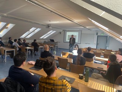 Nach einer kurzen Vorstellung des IMEL und seiner Schwerpunkte durch Prof. Menges wurde es interaktiv: Wie bereits in den vergangenen Jahren führte er die beliebte „Unterhausdebatte“ durch. In diesem Format kommen die Studierenden nicht nur miteinander, sondern auch mit Lehrenden und Mitarbeitenden direkt ins Gespräch.