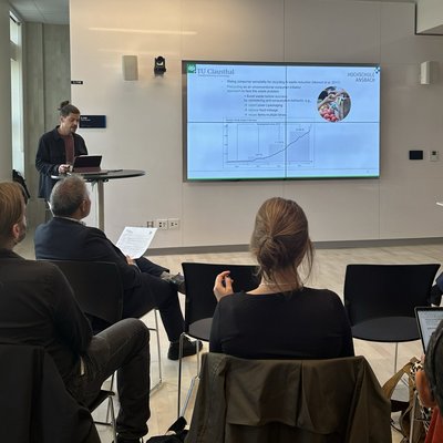 Frau Joana Disselhoff und Herr Dr. Julien Geissmar präsentierten aktuelle Forschungsergebnisse zu nachhaltigem Konsumverhalten sowie zu den Faktoren, die Konsumentscheidungen im Kontext von Nachhaltigkeit und Ressourcenschonung prägen.