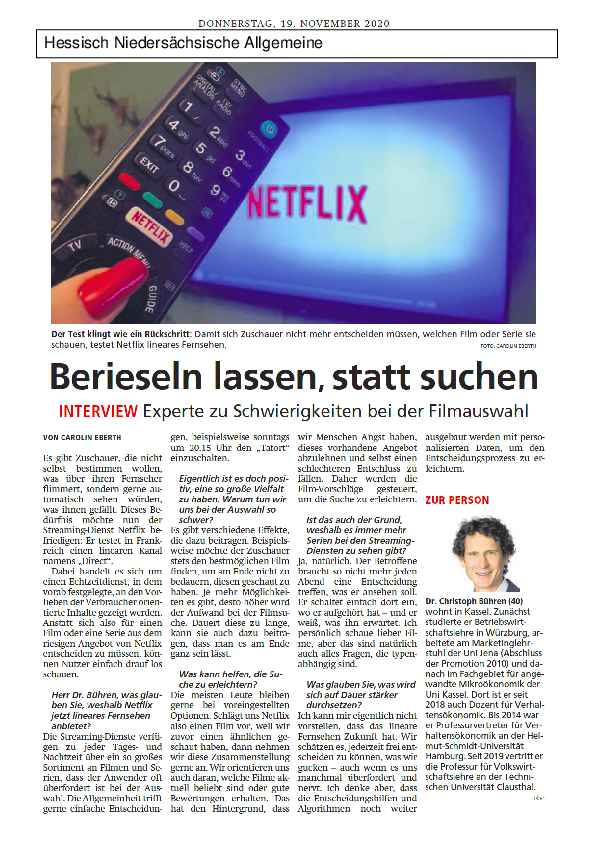 Interview von Dr. Christoph Bühren in der Hessischen Niedersächsischen Allgemeinen