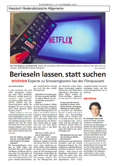 Beitrag in der Hessisch Niedersächsischen Allgemeinen